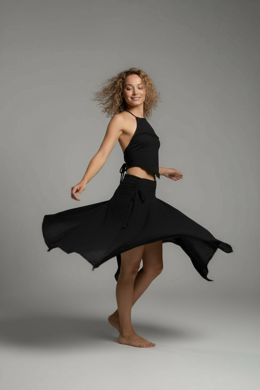 Saia Capadócia - Gaze de Algodão Preta